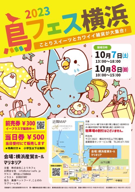 10月7日、8日の土日は「鳥フェス横浜」に出店します♪