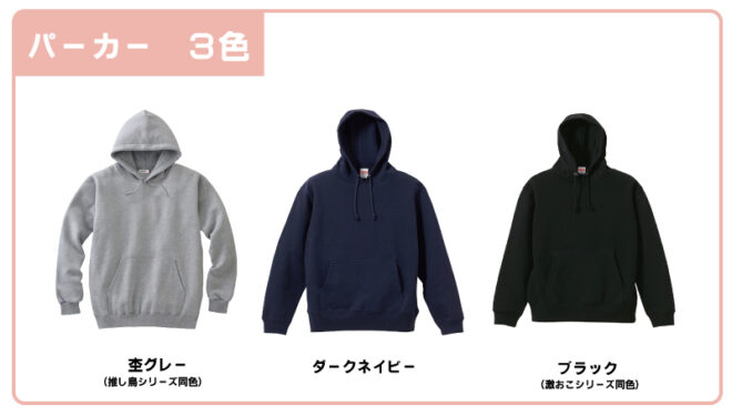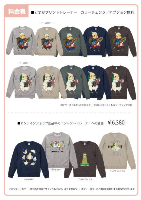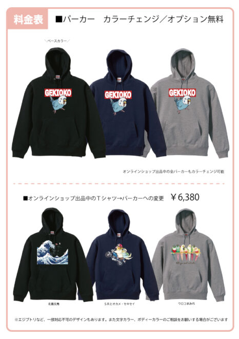 また、パーカーをトレーナーにしたり、オンラインショップの半袖Tシャツをパーカーやトレーナーにするオプションサービスも行います。