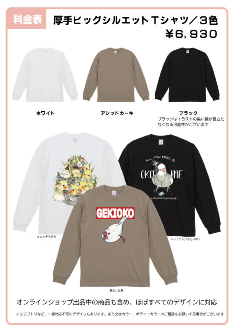 お値段が高くなってしまうのですが、デザインの組み合わせがかなり自由なので「このデザインでロンT欲しかった!」という方はぜひお試しいただきたいです。