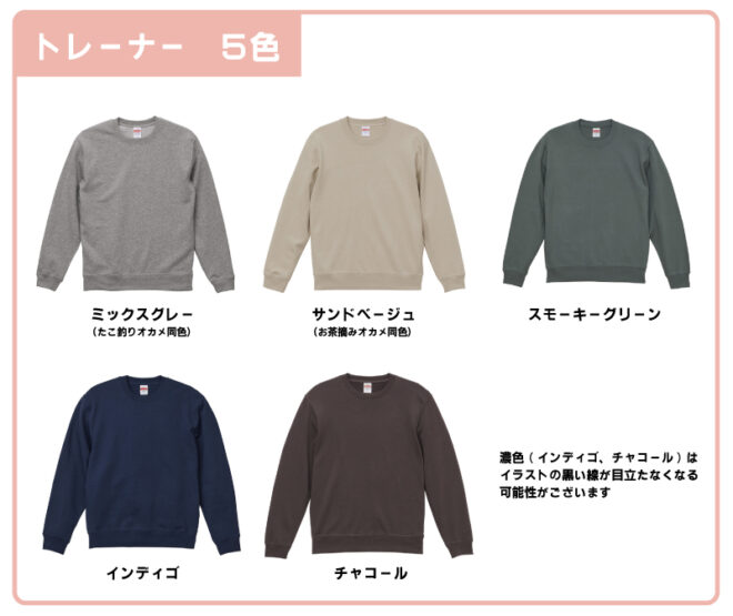 今回お持ちするパーカー、トレーナー類は無料でボディのカラーチェンジが可能です。