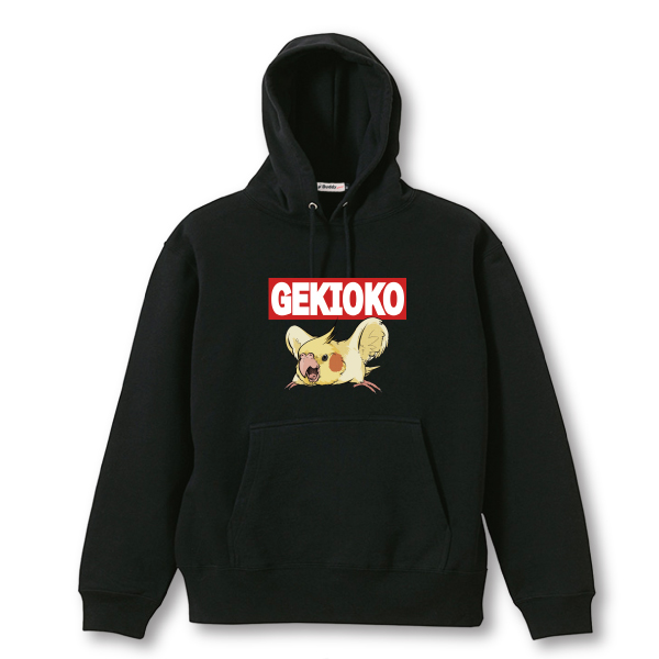 オカメインコ、セキセイインコ、文鳥の「ごるぁ!」の声が聞こえる、激おこフェイスのパーカーです。