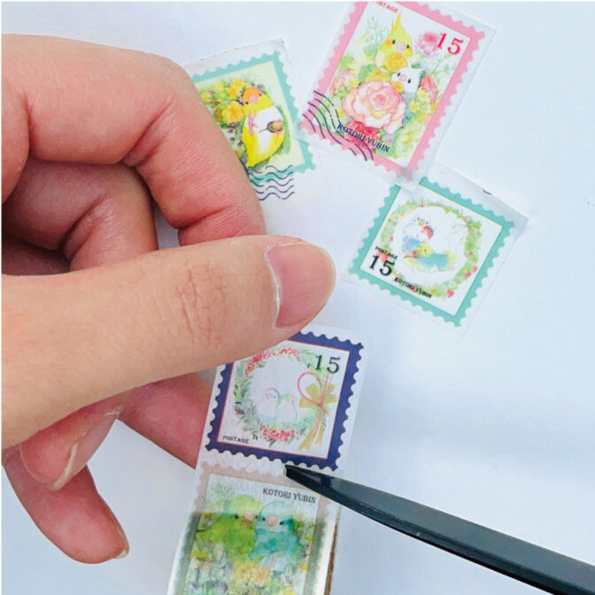 切手の絵柄を利用して、絵柄ごとに単独でカットして使うのもとても可愛いですよ^^