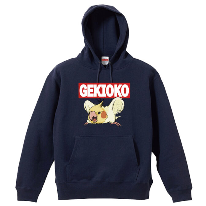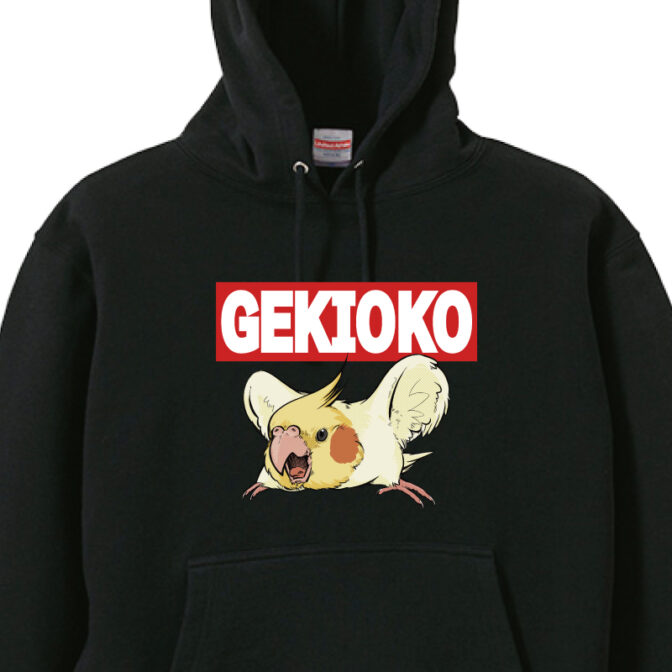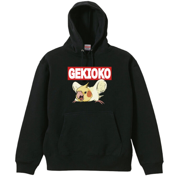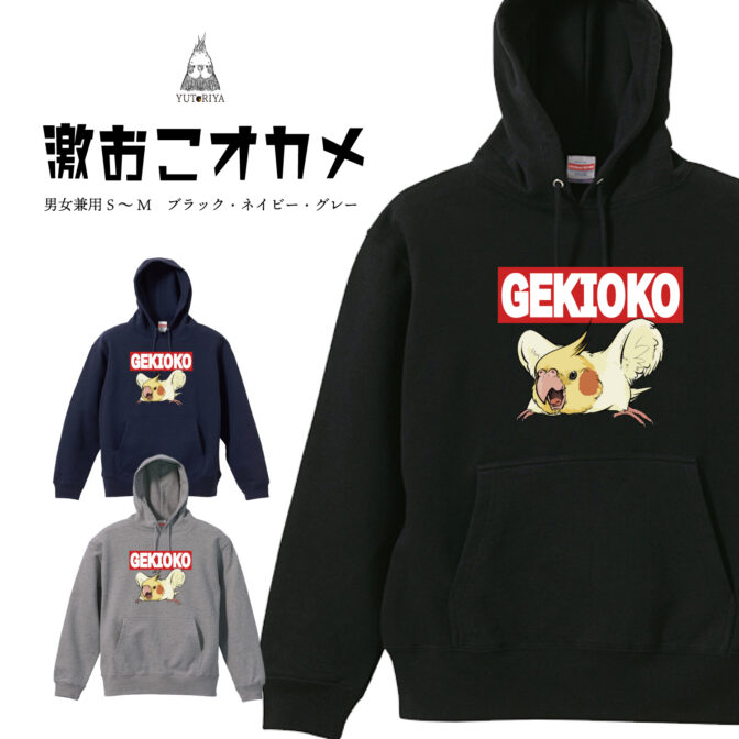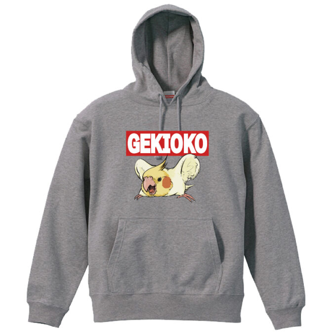 オカメインコの「フッ!フッ!」の声が聞こえる、激おこフェイスのパーカーです。